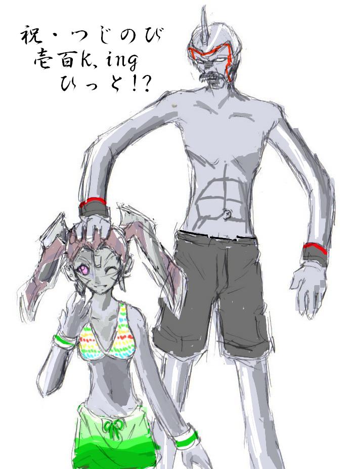 ウィルさんと日向さんが辻ノビっ!!10万HITお祝いに描いてくれました!ウィルさんが絵を担当して日向さんが色塗りをしたそうです、ゴーレムちゃんのかわいさがよくでてます!そしてKING兄さんなんかふけてる気がするんだけど・・・これはKING兄さんじゃなくてKINGパパだよ!?ありがとー!