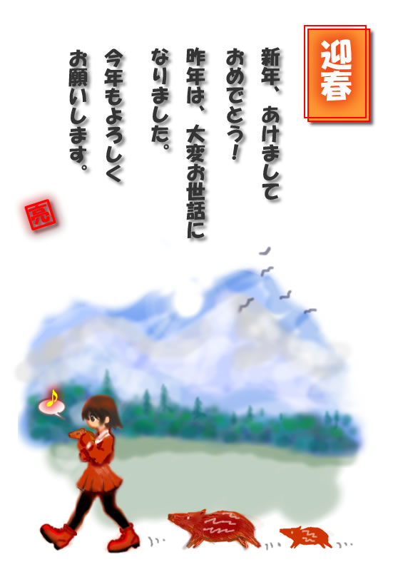 亮さんから年賀状をもらいました!今年もよろしくお願いします~!水彩いいですねぇ、なんというかかわいいの一言につきます!この女の子いいよ!女の子!(ぉ ふんわり和む今年もがんばれる一枚です!ありがとー!あ、あと本人からのお願いで一応、無断転載は禁止でお願いします~。