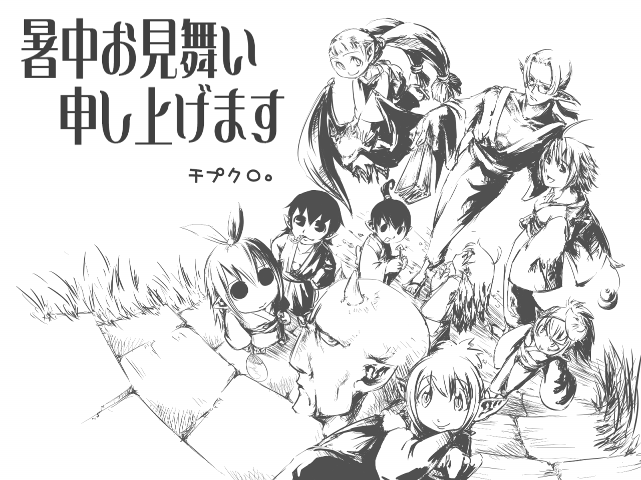 チプクロ。のアリシアナさんがSMメンバーに暑中お見舞いとして描いてくれたものです!魔王の乗ってるのレミリアらしいですがデカ!?しかしSMメンバーの個性がでてて誰かが結構わかりやすくていいなぁ。とにかく暑い中ですががんばりましょう!ありがとー!